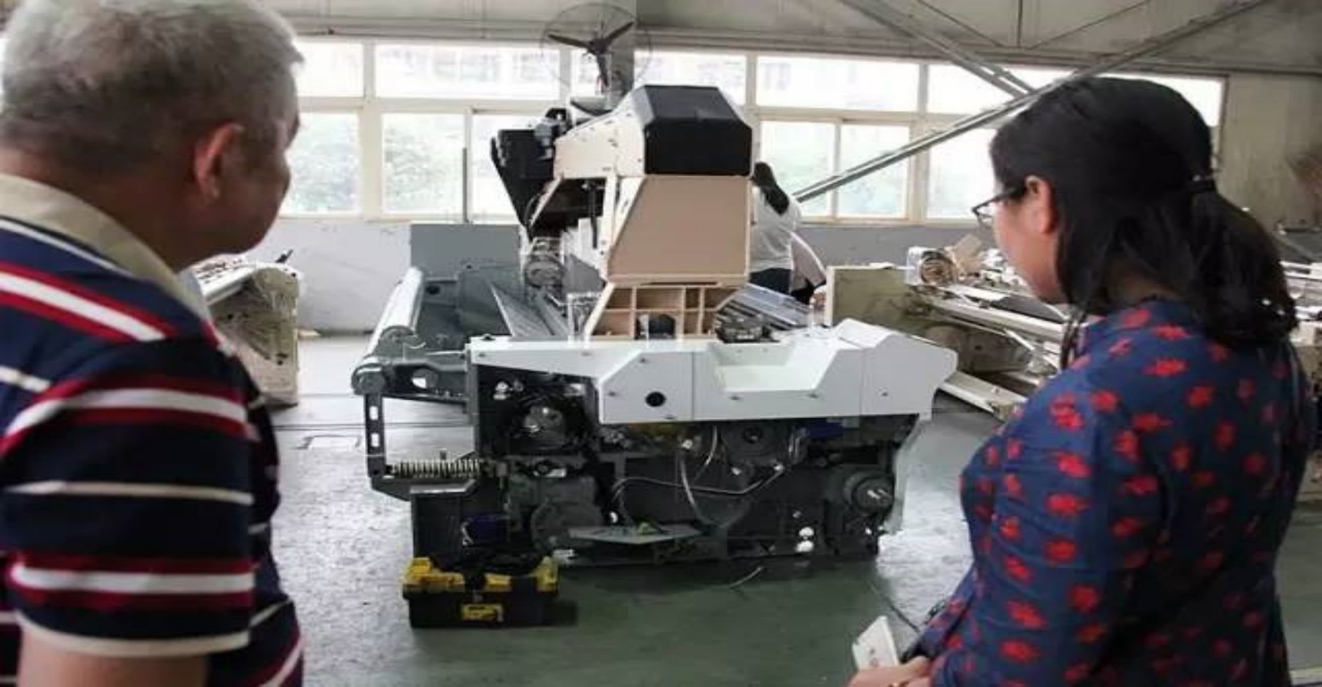 海佳根據(jù)客戶的需求,研發(fā)出個(gè)新機(jī)型,生產(chǎn)出了幾臺(tái)樣機(jī),擺在客戶的車間試用。包括津田駒在內(nèi)的多家織機(jī)同時(shí)也在試樣。